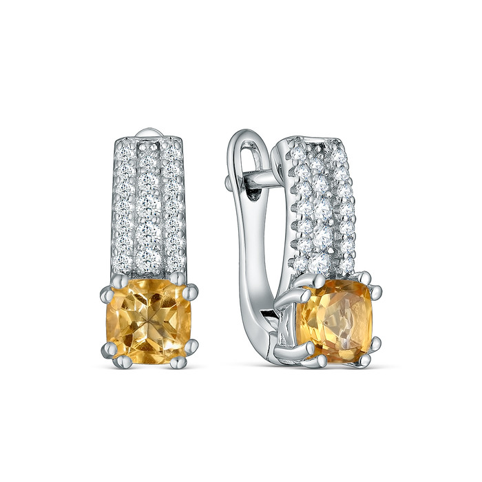 Совместные покупки Курган Ювелирные украшения и бижутерия Серьги — Серьги из серебра с цитрином и кубическим цирконием родированные 925 пробы GTE-1