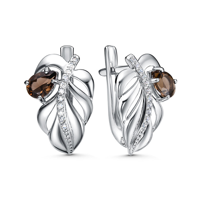Совместные покупки Курган Ювелирные украшения и бижутерия Серьги — Серьги из серебра с дымчатым кварцем и фианитами родированные 2-4148-001