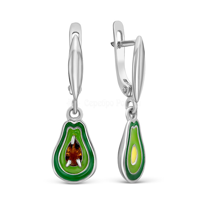 Серьги из серебра с эмалью и фианитом родированные - Авокадо