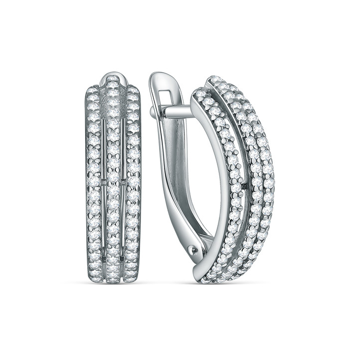 Серьги из серебра с фианитами родированные 11-2043р