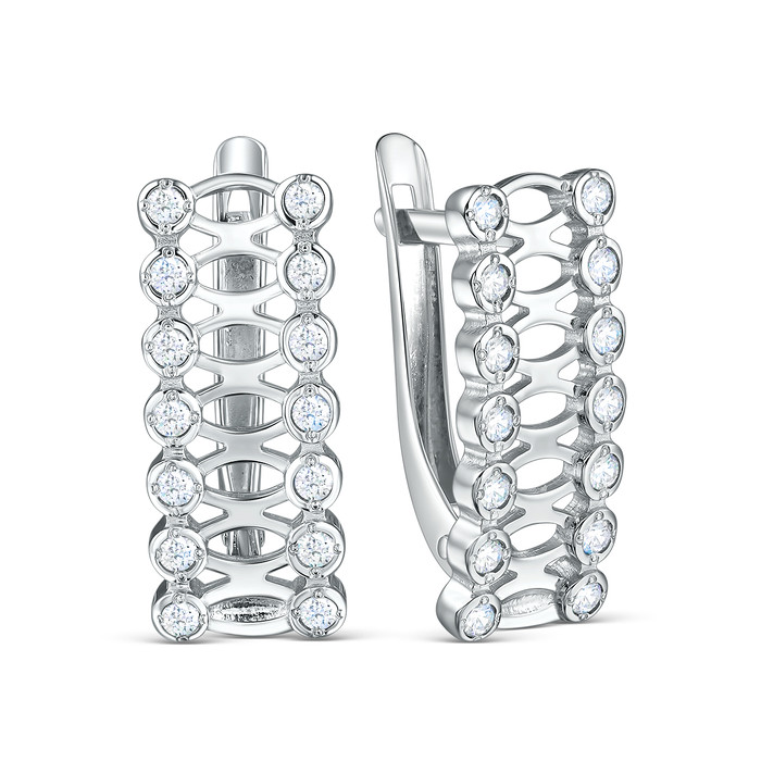Серьги из серебра с фианитами родированные 3101028591