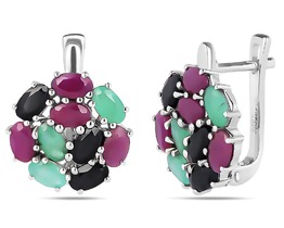 Серьги, изумруд берилл , рубин корунд , сапфир корунд, Алира