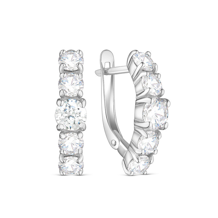 Серьги из серебра с фианитами родированные 925 пробы 11-0546р