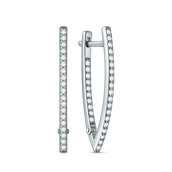 Серьги из серебра с фианитами родированные 925 пробы 11-1972р