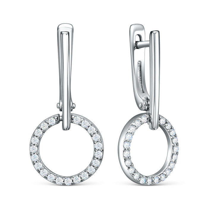 Совместные покупки Курган Ювелирные украшения и бижутерия Серьги — Серьги из серебра с фианитами родированные - Круги 925 пробы 2-017р200