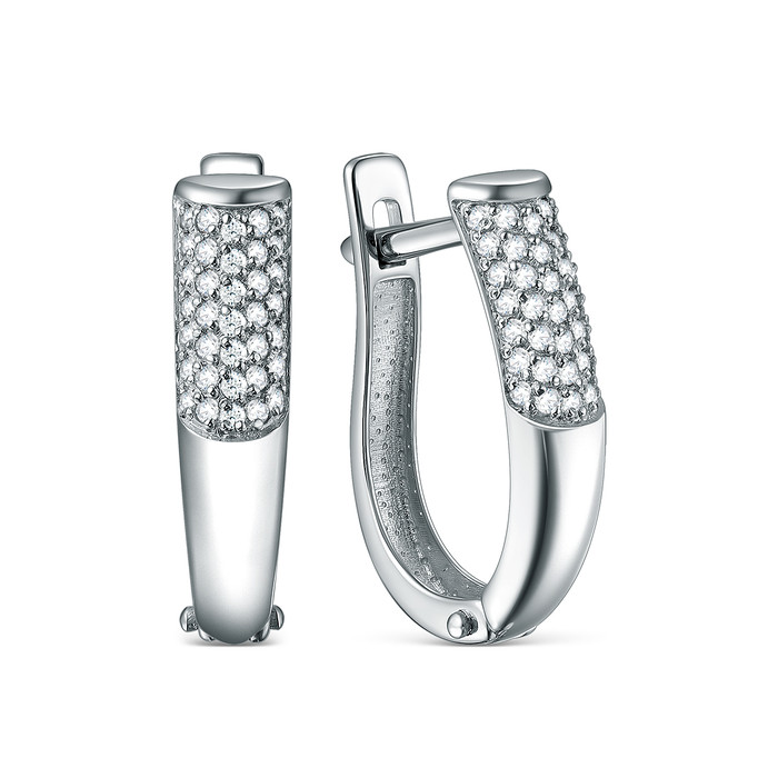 Серьги из серебра с фианитами родированные С5484р