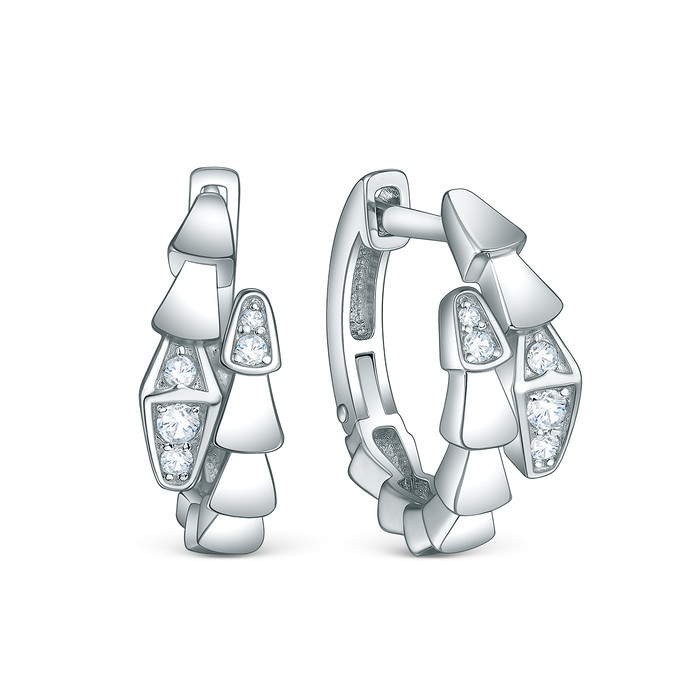 Серьги из серебра с фианитами родированные - Змеи 2340205968