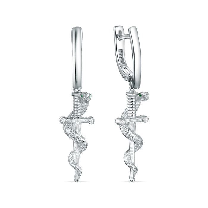 Совместные покупки Курган Ювелирные украшения и бижутерия Серьги — Серьги из серебра с фианитами родированные - Змеи 925 пробы 421-10-790р