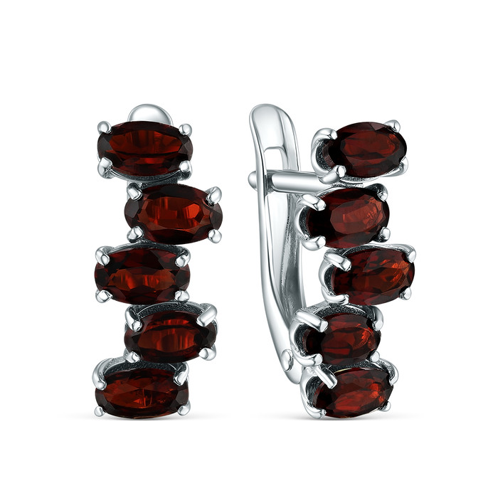 Серьги из серебра с гранатом родированные 4-2060-5-1р404