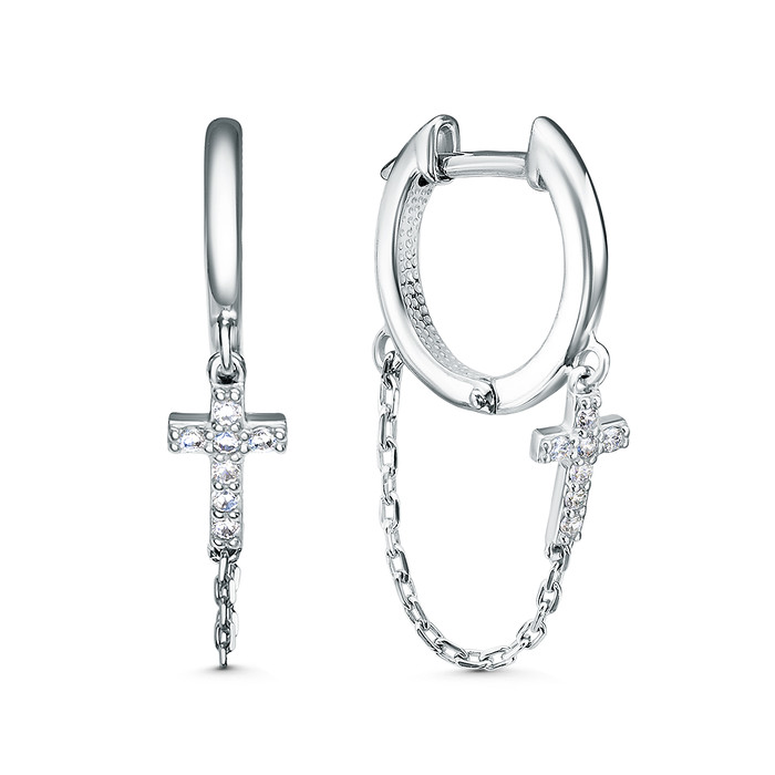 Серьги из серебра с крестами и фианитами родированные 925 пробы 11-1971р