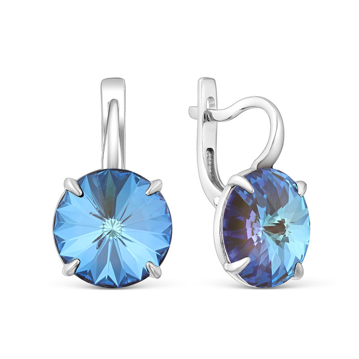 Совместные покупки Курган Ювелирные украшения и бижутерия Серьги — Серьги из серебра с кристаллом Премиум Австрия Армейский Грин родированные 925 п