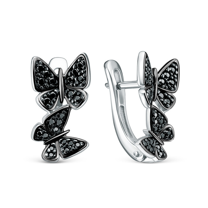 Серьги из серебра с нат.шпинелью родированные - Бабочки 925 пробы с-7264чр416