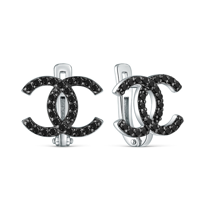 Серьги из серебра с натуральной шпинелью родированные 925 пробы 2-020чр416