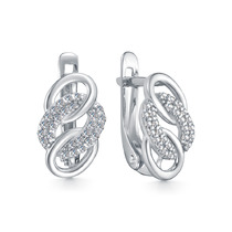 Серьги из серебра с натуральным гранатом и фианитами родированные Са-076р404