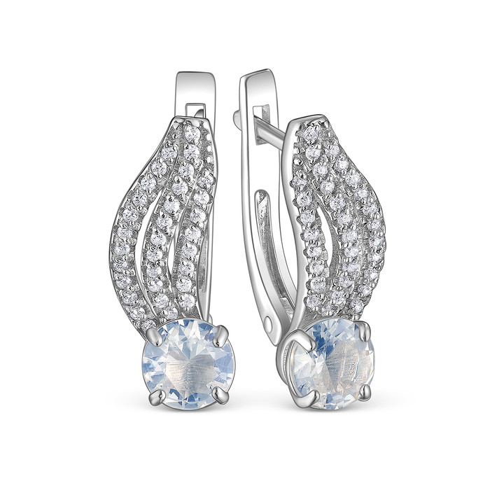 Совместные покупки Курган Ювелирные украшения и бижутерия Серьги — Серьги из серебра с плавленым кварцем цвета белый лунный камень и фианитами роди