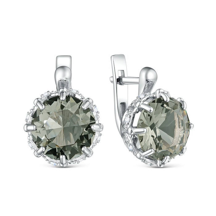 Совместные покупки Курган Ювелирные украшения и бижутерия Серьги — Серьги из серебра с плавленым кварцем цвета дымчатый и фианитами родированные 92