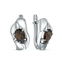 Серьги из серебра с дымчатым кварцем родированные 1-5454-001