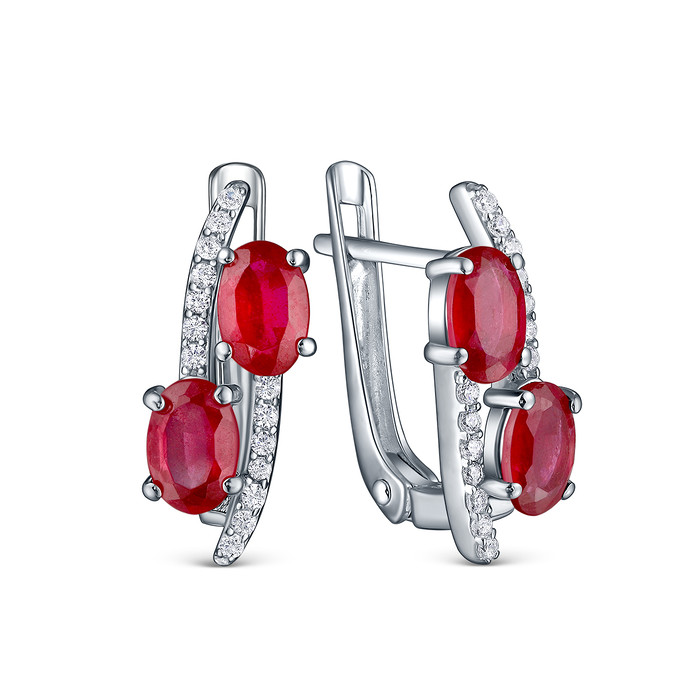 Серьги из серебра с рубином и кубическим цирконием родированные 925 пробы GTE-26