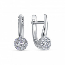 Серьги из серебра с сапфиром и кубическим цирконием родированные