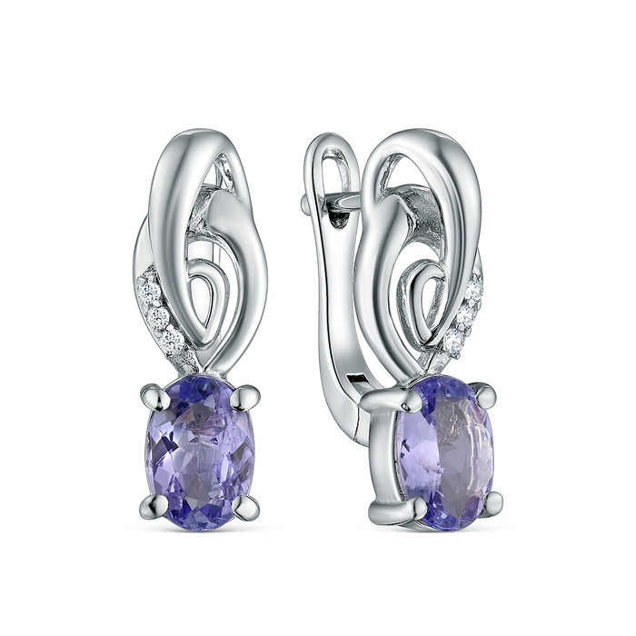 Совместные покупки Курган Ювелирные украшения и бижутерия Серьги — Серьги из серебра с танзанитом и кубическим цирконием родированные 925 пробы GTE