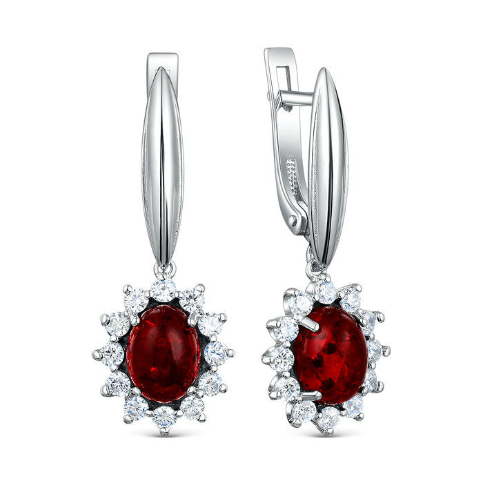 Совместные покупки Курган Ювелирные украшения и бижутерия Серьги — Серьги из серебра с янтарём и фианитами родированные 925 пробы 04-802-0056-16