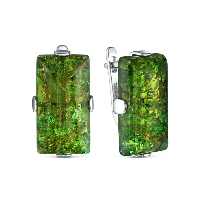 Серьги из серебра с зелёным янтарём родированные 925 пробы 04-802-0159-09