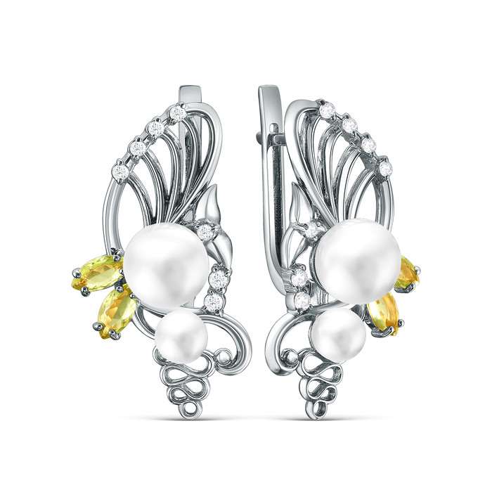 Совместные покупки Курган Ювелирные украшения и бижутерия Серьги — Серьги из серебра с жемчугом Сваровски, плавленым кварцем и фианитами родированн