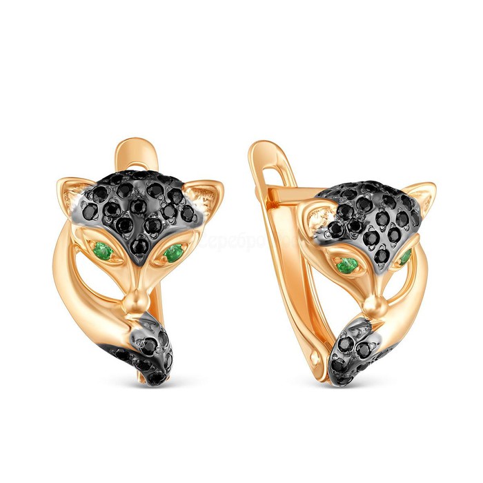 Серьги из золочёного серебра с фианитами и родированием