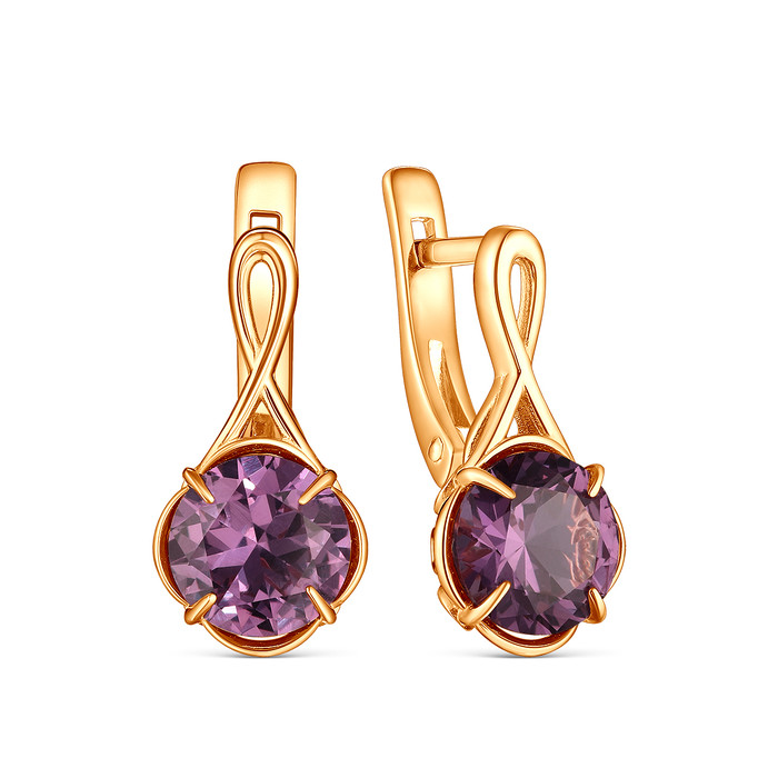 Серьги из золочёного серебра с гидротермальным александритом 925 пробы 2-484з946