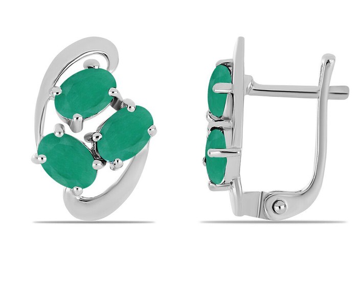 Серьги, арт.657897 Серебро Серебро 925, 3,97 гр., изумруд берилл