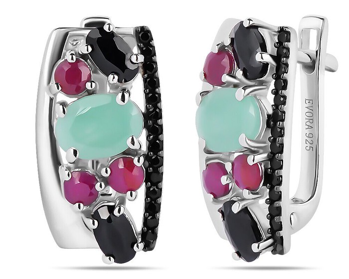 Серьги, арт.658684 Серебро Серебро 925, 5,08 гр., изумруд берилл , рубин корунд , сапфир корунд , шпинель