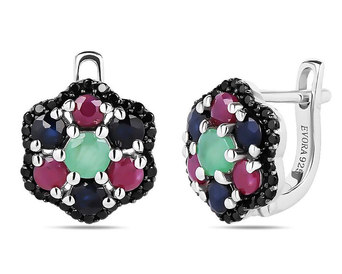 Серьги, арт.658560 Серебро Серебро 925, 4,75 гр., изумруд берилл , рубин корунд , сапфир корунд , шпинель