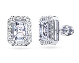 Серьги с фианитом родированные серебро 925*