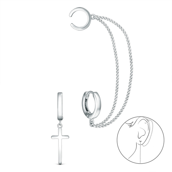 Серьги кафф с крестом из серебра родированные 925 пробы 21064р