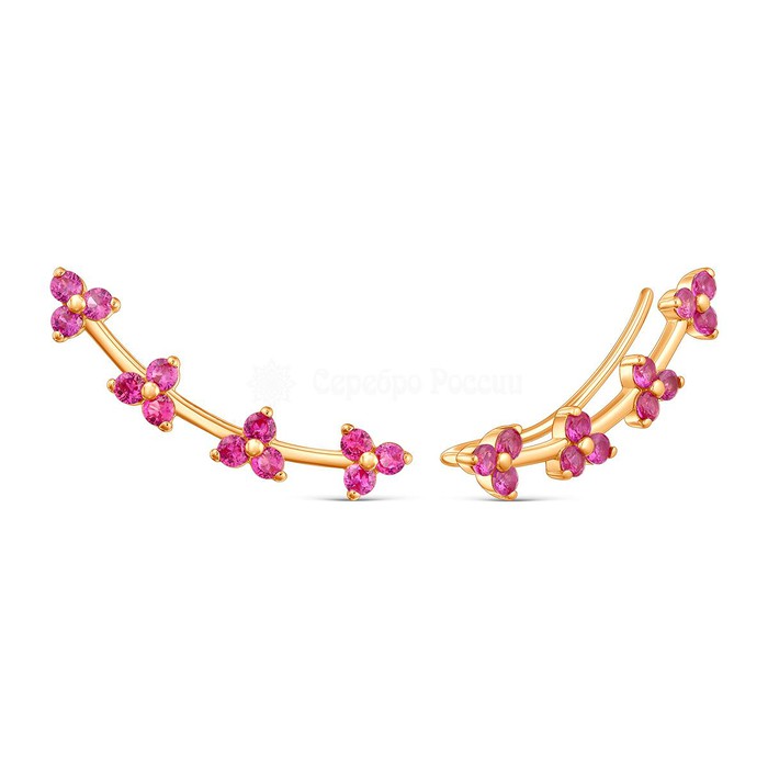 Совместные покупки Курган Ювелирные украшения и бижутерия Серьги — Серьги-каффы из серебра с рубиновыми фианитами родированные п7-894-3з215