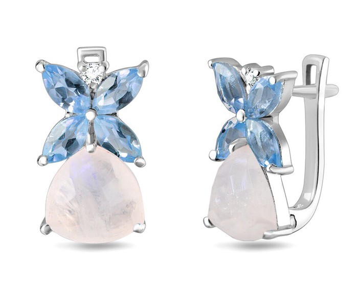 Серьги, арт.656231 Серебро Серебро 925, 4,35 гр., лунный камень , танзанит выращ.