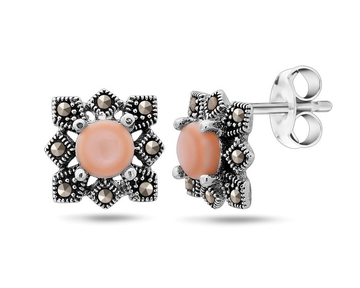Совместные покупки Курган Ювелирные украшения и бижутерия Серьги — Серьги, марказит , перламутр розовый, SL-LNJ340
