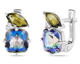 Серьги, арт.658579 Серебро Серебро 925, 3,93 гр., мистик кварц синий , оливковая шпинель