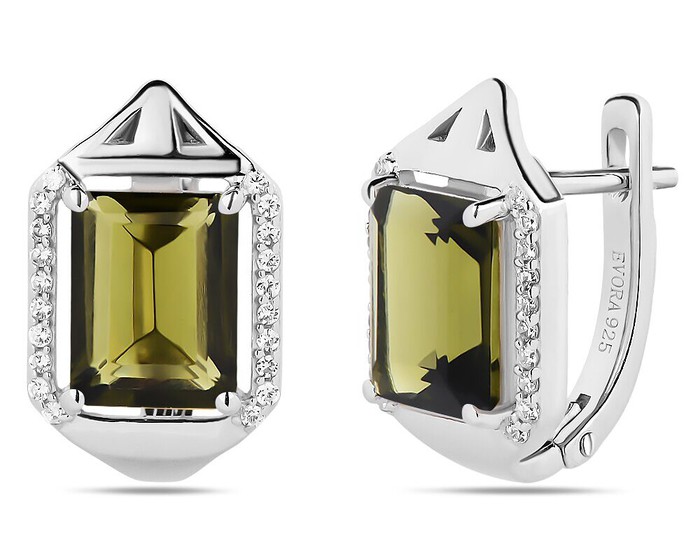 Серьги, арт.658718 Серебро Серебро 925, 5,08 гр., оливковая шпинель