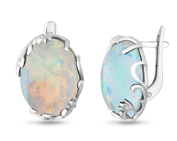 Серьги, арт.656559 Серебро Серебро 925, 4,5 гр., опал голубой рек.