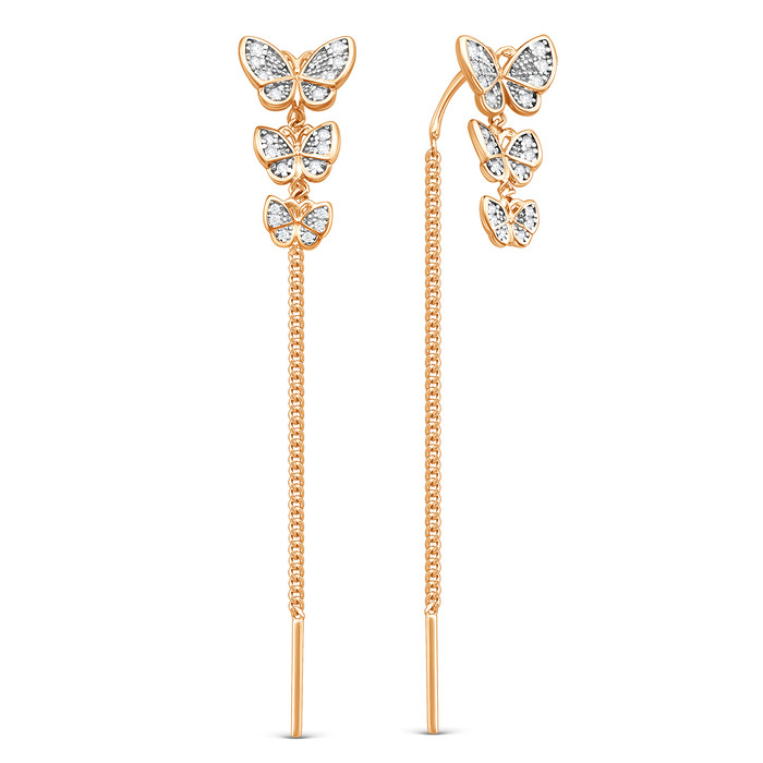 Совместные покупки Курган Ювелирные украшения и бижутерия Серьги — Серьги-продёвки длинные из золочёного серебра с фианитами и родированием - Бабоч