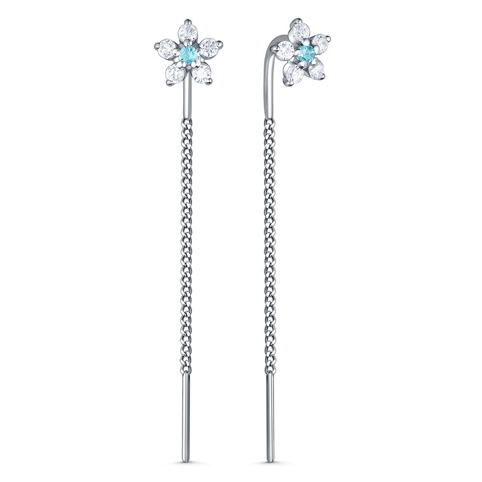 Серьги-продёвки из серебра с фианитами родированные - Цветы 925 пробы 2-591р2030