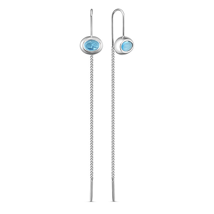 Серьги-продёвки из серебра с голубыми фианитами родированные 925 пробы 110026_01