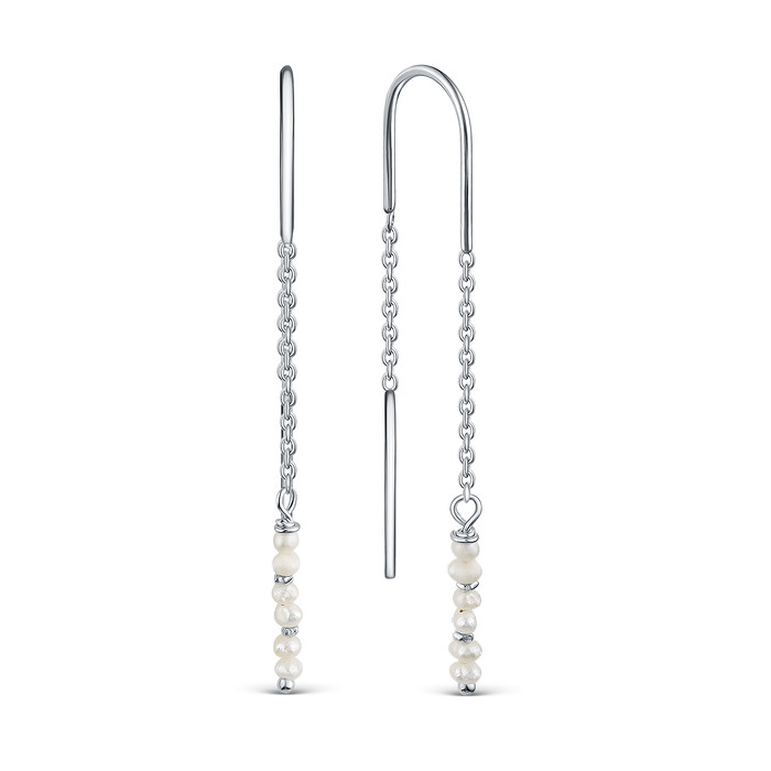 Серьги-продёвки из серебра с культивированным жемчугом родированные 925 пробы 15