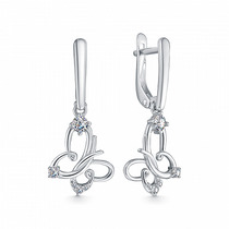 Серьги-продёвки из золочёного серебра с фианитами и родированием - Бабочки с-001