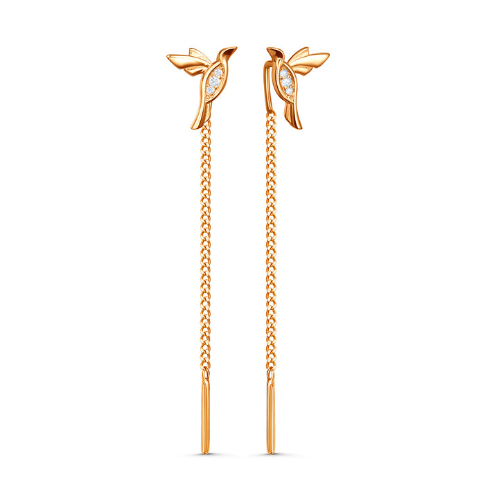 Серьги-продёвки из золочёного серебра с фианитами - Птички сп-739з200