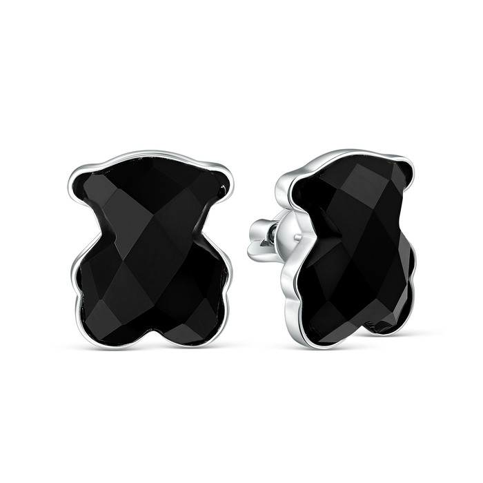 Совместные покупки Курган Ювелирные украшения и бижутерия Серьги — Серьги-пусеты из серебра с агатом родированные - Мишки 925 пробы Ts-15-02Ar
