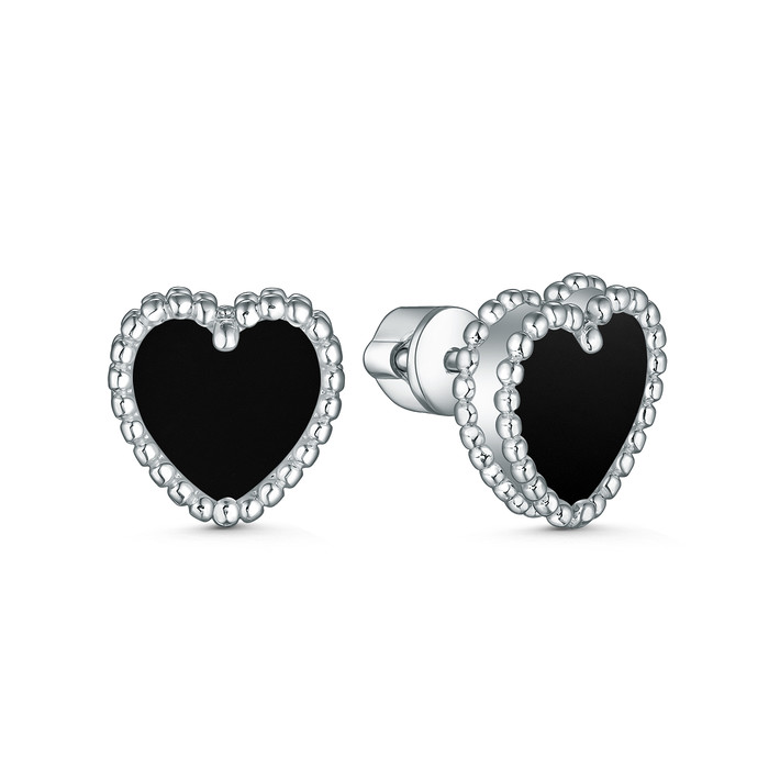 Совместные покупки Курган Ювелирные украшения и бижутерия Серьги — Серьги-пусеты из серебра с чёрным ониксом родированные - Сердца 2-032р442