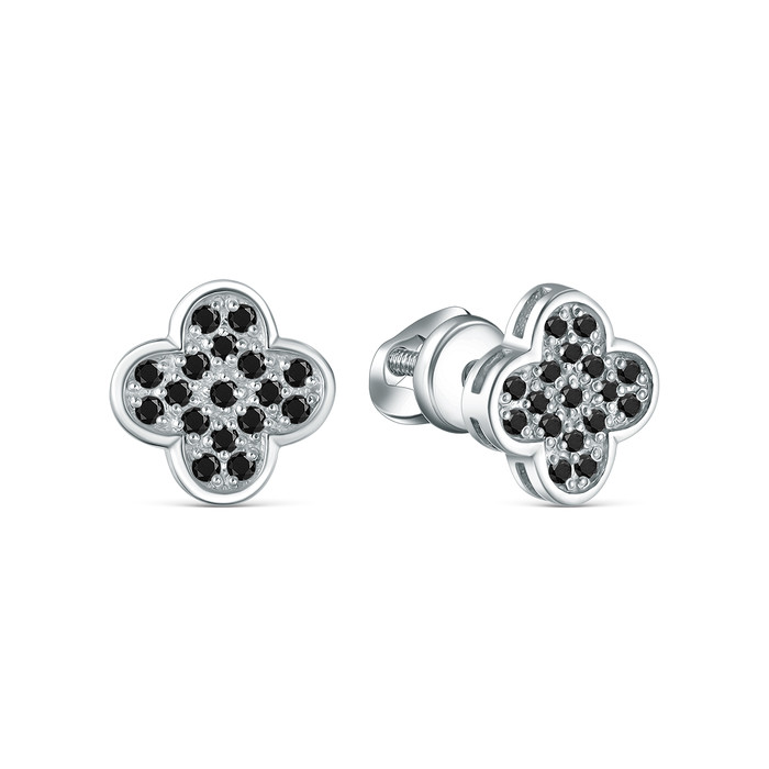 Совместные покупки Курган Ювелирные украшения и бижутерия Серьги — Серьги-пусеты из серебра с чёрными фианитами родированные 925 пробы С-4005-Р-16