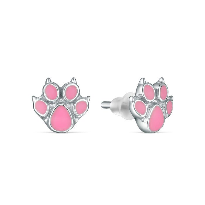 Серьги-пусеты из серебра с эмалью родированные - Лапки 2110132